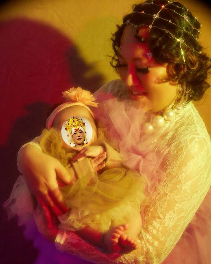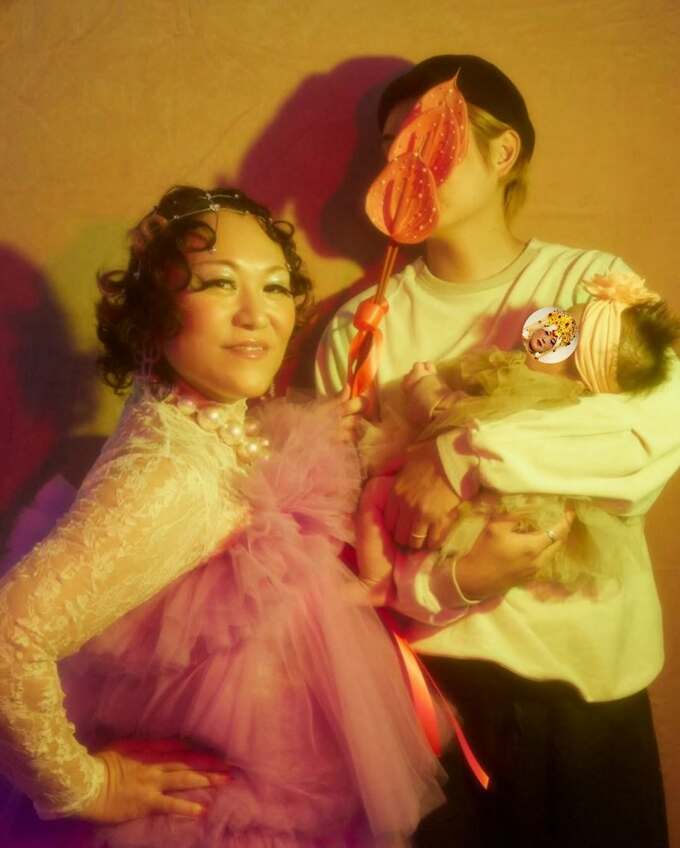 バービーさんは「初めての家族撮影は、気合いを入れてオウムのトサカみたいなツケマをつけました」と、家族の3ショット写真をアップ。