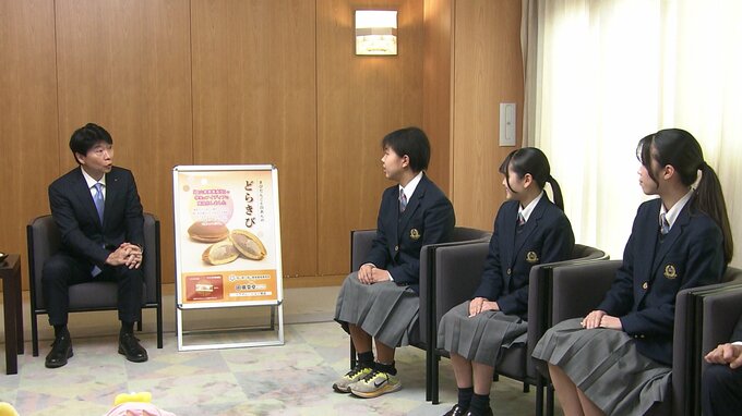 「岡山を代表する菓子に」と新たにつくられた、その名も「どらきび」です。12月19日、完成の報告に岡山東商業高校の生徒ら7人が県庁を訪れました。