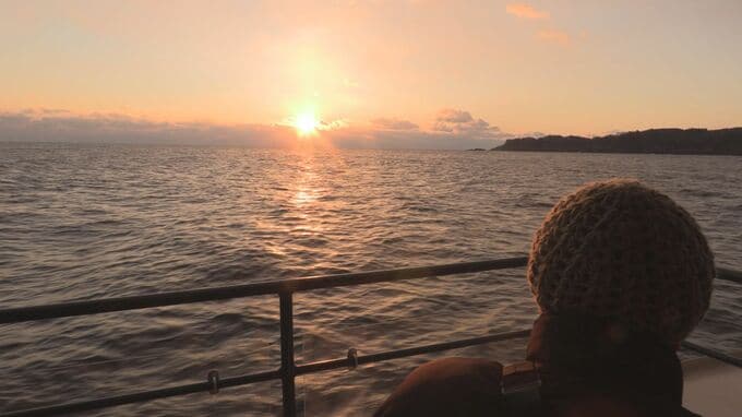 岩手県宮古市では遊覧船「宮古うみねこ丸」の初日の出クルーズにおよそ80人が乗船しました。今朝は水平線が厚い雲に覆われていましたが、冷たい風が吹く中10分ほど待つとオレンジ色の光が辺りを明るく照らしました。