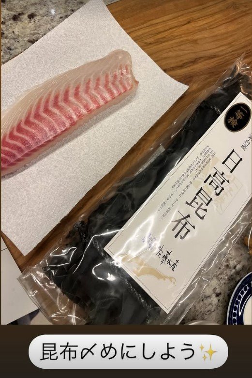 工藤静香さんは、お刺身と日高昆布の写真をアップし「昆布〆めにしよう」と投稿。