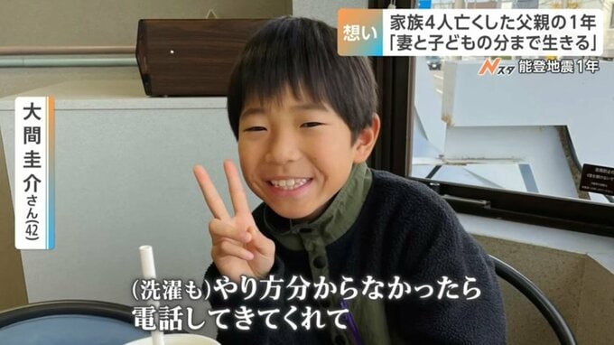 大間さんは地震直後、周囲を見回るため家の外に出て難を逃れましたが、妻・はる香さんと長女・優香さん、長男・泰介くん、次男・湊介ちゃんは犠牲となりました。