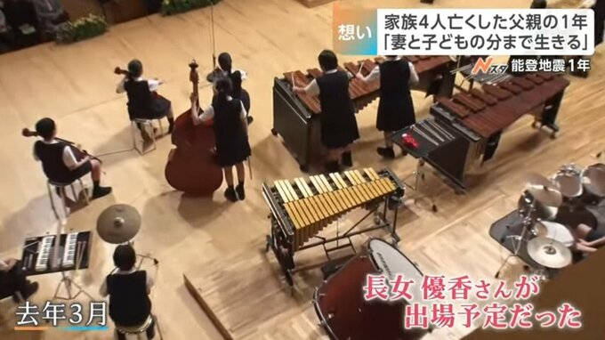 2024年3月、大間さんが訪れたのは長女・優香さんが出るはずだった音楽コンクール。舞台には優香さんの楽器も。仲間たちが演奏する様子を目に焼き付けました。