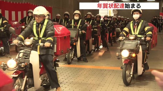 広島県内でも年賀状の配達が始まりました。広島中央郵便局では1日朝、出発式が行われました。広島中央郵便局 安光政則 局長「1年で最初に心をつなぐ贈り物です。丁寧に届けましょう」末川徹記者「午前7時半過ぎで…