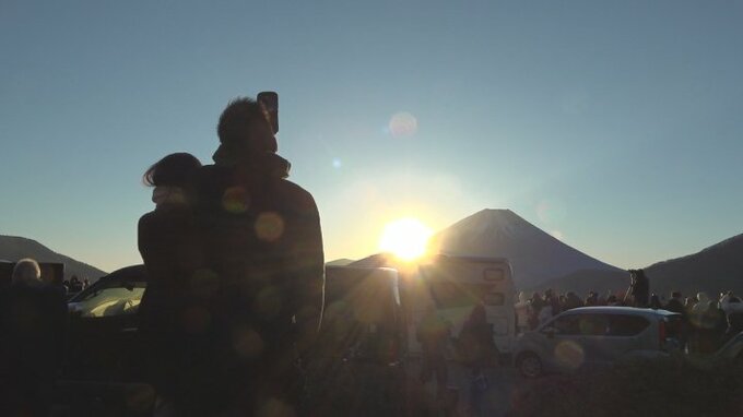 山梨県身延町の本栖湖の湖畔では1月1日、富士山から昇る初日の出を見るとこが出来ました。