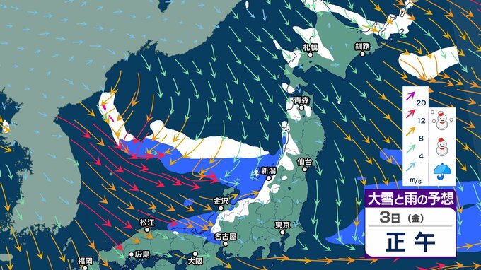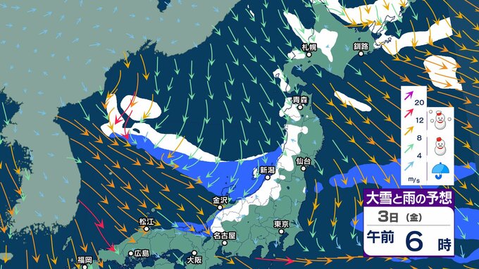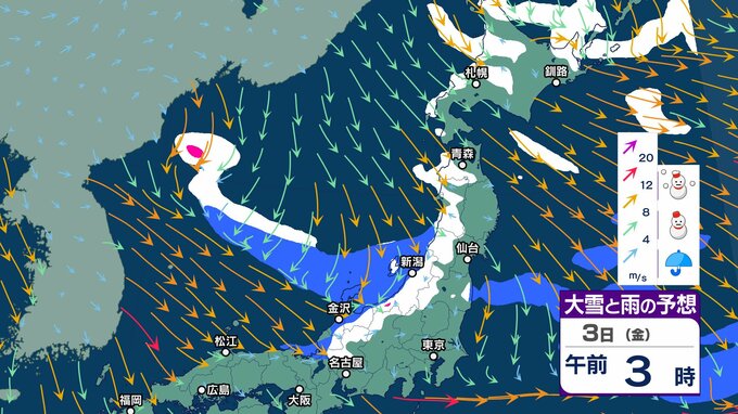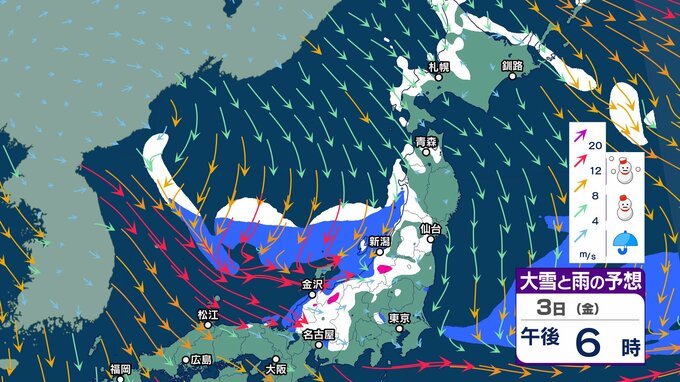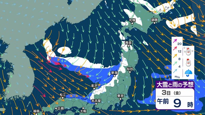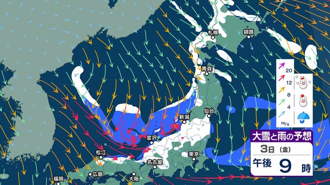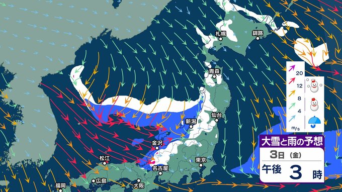 3日4日は雪のピーク…Uターンの道路交通に注意 北陸~山陰の山沿いで積雪急増へ【雪と雨のシミュレーション 3時間ごと】 チューリップテレビ 2025年1月2日(木) 08:09 国内 天気 3日 雪と雨シミュレーション(3時間ごと)