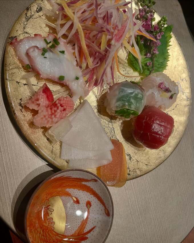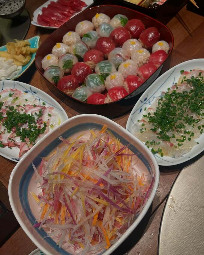 投稿された写真では、色とりどりの手毬寿司、サラダ、お刺身、ゼリーなど、数々の美味しそうな料理が見て取れます。