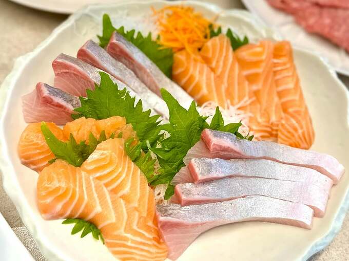 投稿された写真では、肉料理、エビマヨ、お刺身、煮物、数の子、汁物など、美味しそうな料理の数々が見て取れます。
