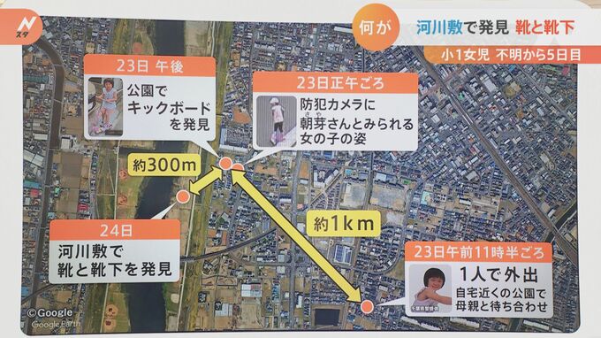 しかし同じ日の正午頃、家を出て30分後ぐらいに、家から直線距離で約1キロ離れたところにある防犯カメラに朝芽さんとみられる女の子の姿が映っていたそうです。