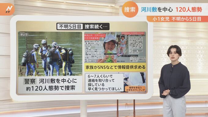 警察は河川敷を中心に約120人態勢で捜索を行っている状況です。