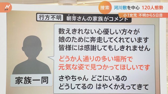 朝芽さんの行方がわからなくなってから5日目ですが、捜索は続いています。