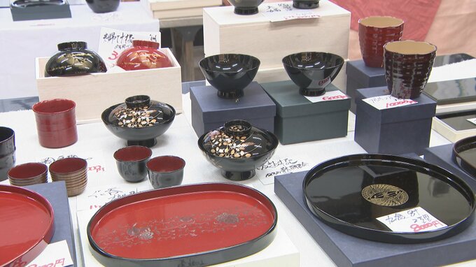また、輪島朝市で被災した輪島塗の製造・販売店は、「復興の懸け橋」という願いを込めて作った箸やお椀などを販売。訪れた人は、かわるがわる商品を手に取っていました。