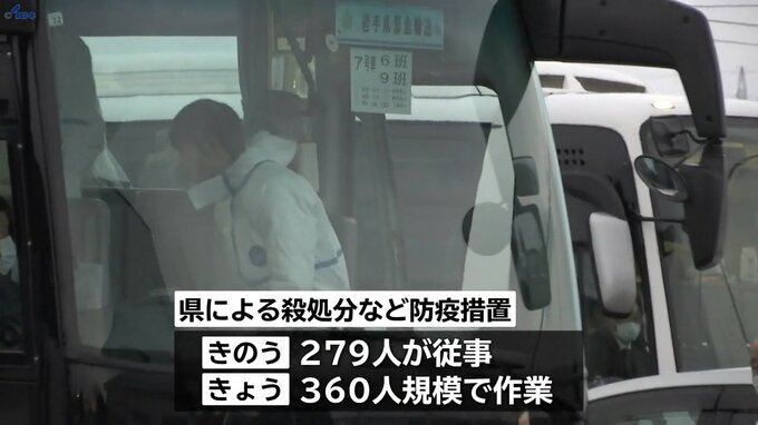 県によりますと、2日は合わせて279人がこの農場で飼育されている12万羽の殺処分をはじめ、汚染した物品や施設の消毒などに従事しました。3日は360人規模で作業が行われるということです。