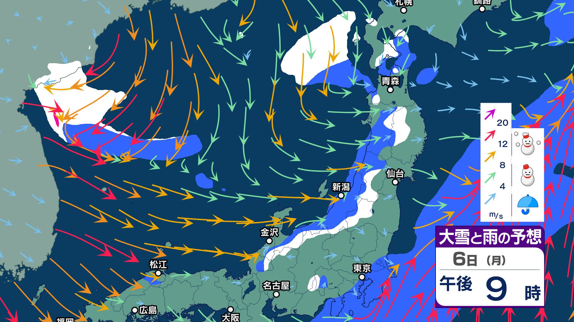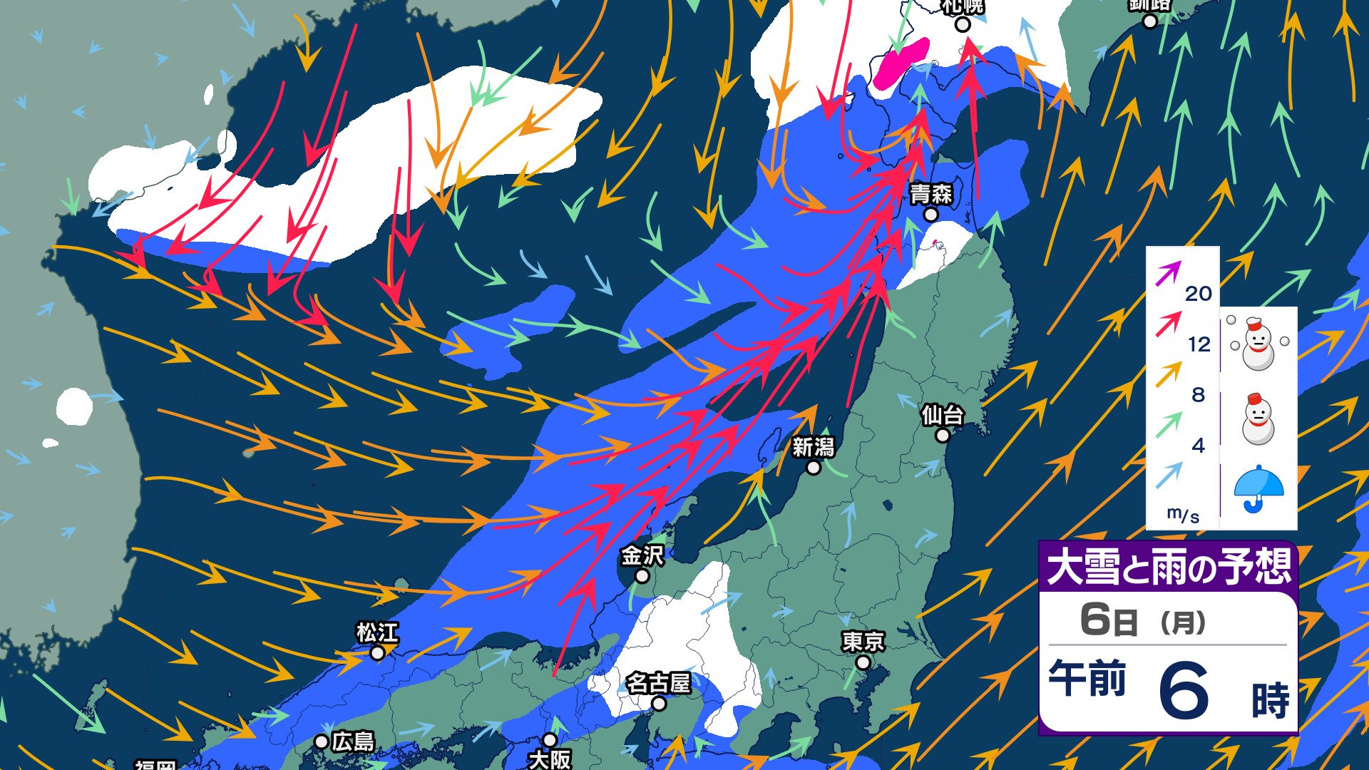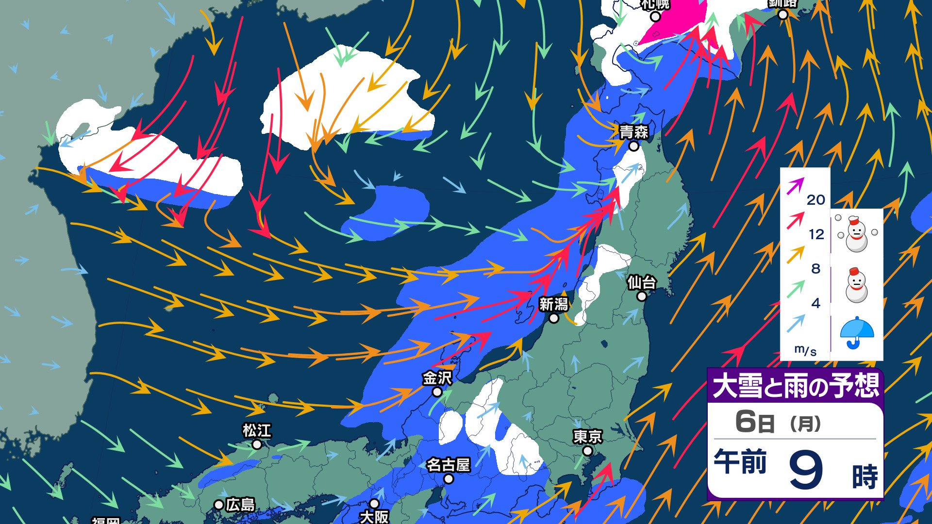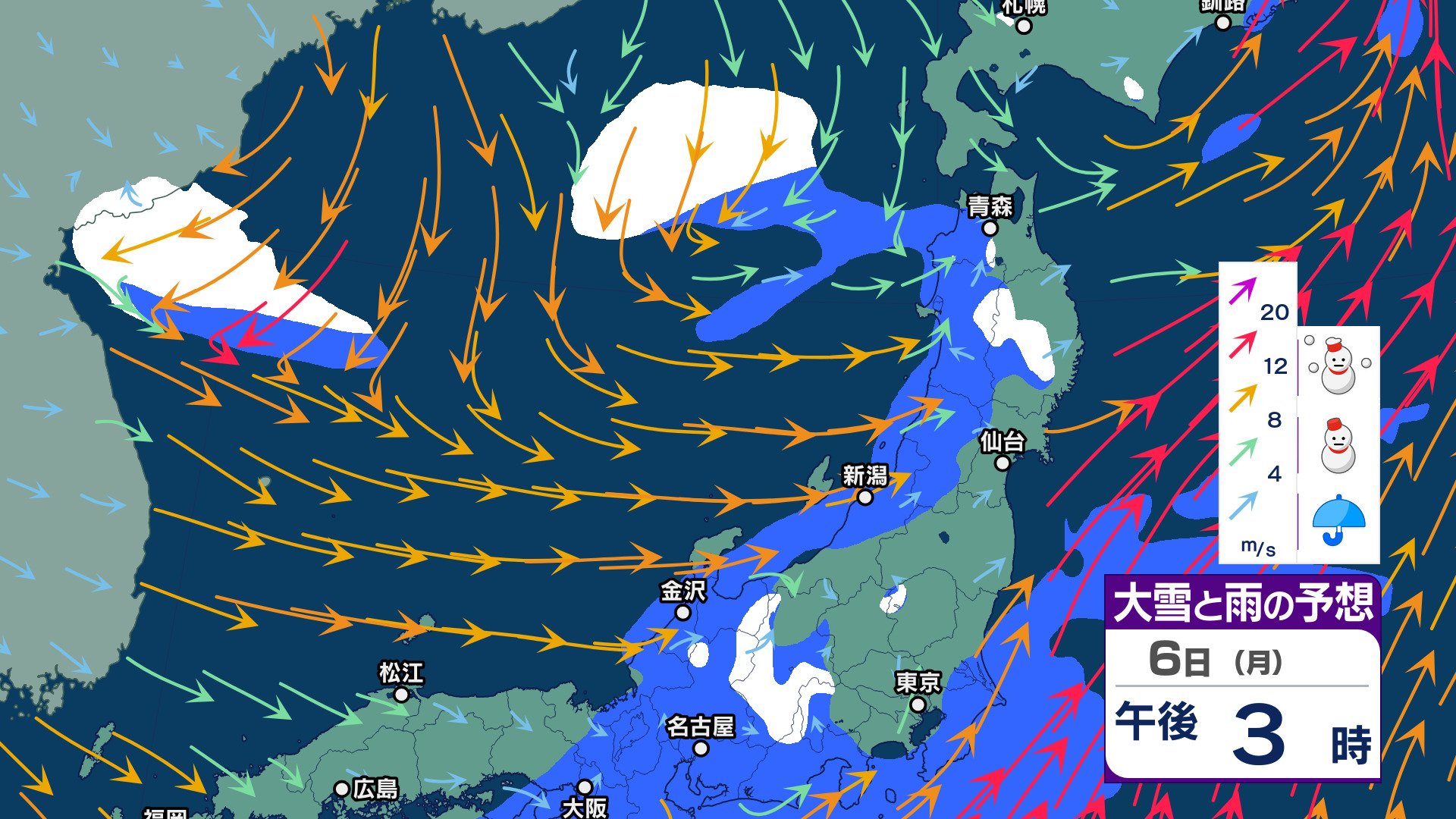 週明け6日 仕事始めは雨…9日頃に今シーズン一番の “嵐の使者” 襲来【週間天気】太平洋側にも雪雲…都内でも雪舞う可能性【雪と雨のシミュレーション 3時間ごと】 チューリップテレビ 2025年1月3日(金) 14:05 国内 天気 6日 雪と雨シミュレーション(3時間ごと)