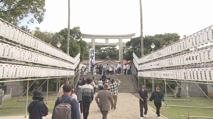 元日、那覇市の護国神社には大勢の家族連れなどが訪れ、絵馬に願い事を書いたり引いたおみくじを互いに見せ合ったりと、活気にあふれていました。
