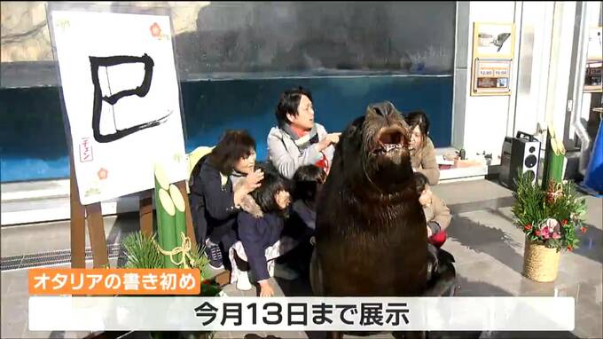 オタリアの書き初めは今月13日まで水族館に展示されます。