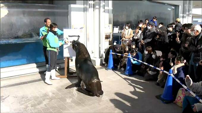 また、アシカの仲間でオタリアのオス「チェン」は書き初めのパフォーマンスを披露。飼育員と協力して口にくわえた筆を器用に動かし、力強い筆づかいで書き上げたのは…。