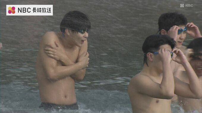 長崎市のねずみ島で3日朝、新春恒例の「寒中水泳」が行われました。気温9度、真冬の海へ入ります。長崎游泳協会の稽古始め「寒中水泳」5歳~79歳までの約50人が泳ぎ初めをしました。今年は被爆80年の節目の年。立…
