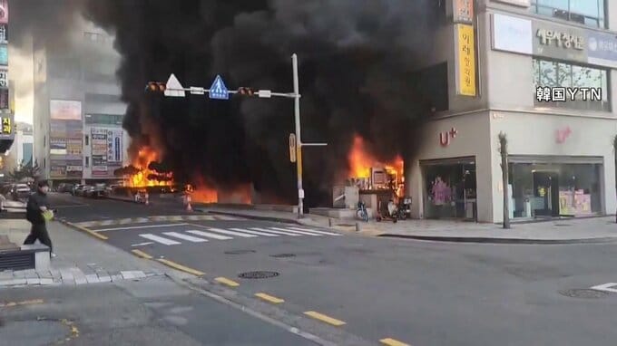韓国・ソウル近郊にある8階建ての商業施設で大規模な火災が発生し、一時300人あまりが避難し、煙を吸うなどして、およそ130人がけがをしたということです。大きな爆発音。炎とともに黒い煙が激しく上がります。地…
