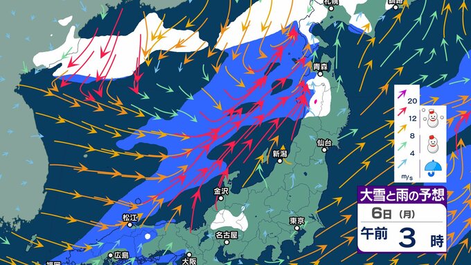 真冬に数回しか流れ込むことのない「今季一番の寒気」が本州南まで流れ込む見込み 8日頃からこの時期としては10年に1度程度しか起きないような著しい低温に 北海道では著しい高温に【雪と雨のシミュレーション 3時間ごと】 チューリップテレビ 2025年1月4日(土) 09:47 国内 天気 6日 雪と雨シミュレーション(3時間ごと)