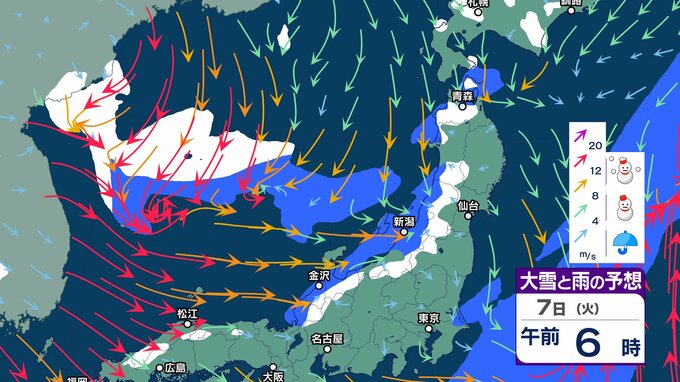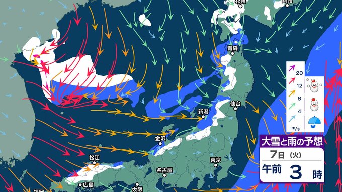 真冬に数回しか流れ込むことのない「今季一番の寒気」が本州南まで流れ込む見込み 8日頃からこの時期としては10年に1度程度しか起きないような著しい低温に 北海道では著しい高温に【雪と雨のシミュレーション 3時間ごと】 チューリップテレビ 2025年1月4日(土) 09:47 国内 天気 7日 雪と雨シミュレーション(3時間ごと)