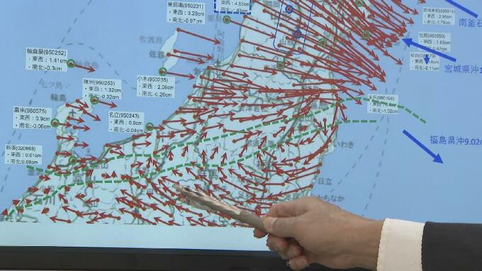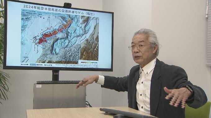 富山大学・竹内名誉教授:「推測では、2011年の東日本大震災の津波を起こした海溝型の超巨大地震の後遺症が東日本全体でまだ続いている。(10年間で)数10センチぐらい東に移動しているわけです。能登でもですね、10センチ、20センチ動きがあるということで、後遺症が続いている中で、南海トラフの巨大地震の準備が進んでいる。能登半島は2つの影響がちょうど重なる場所だということになります」