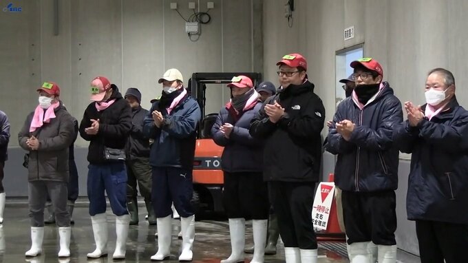 魚市場で仕事始めです。岩手県大船渡市魚市場で4日朝、豊漁を願う初売り式が行われました。