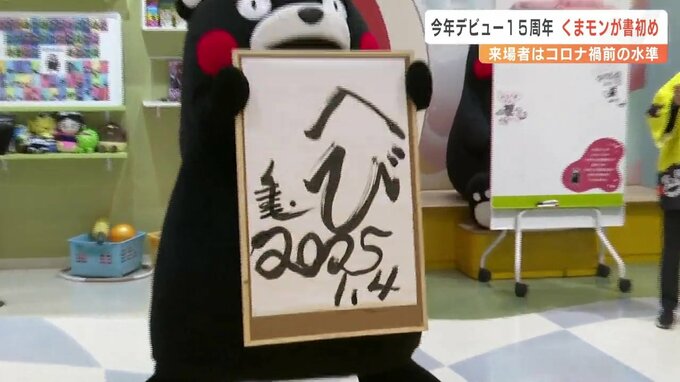 今年でデビュー15周年となるくまモンが、今年最初のステージで書初めを披露しました。新年の初ステージには国内をはじめ、アメリカや台湾などから約200人が集まりました。最初にダンスを披露したくまモンは、訪れ…