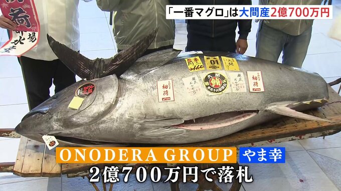 新春恒例の初競りが東京の豊洲市場で行われ、青森県大間産のクロマグロが2億円を超す最高値で競り落とされました。午前5時すぎ、東京の豊洲市場で始まった“初競り”。最高値をつけた「一番マグロ」は、青森県の大…