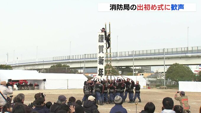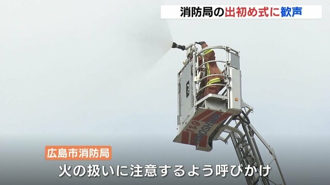 広島市消防局の出初め式が行われ、はしご乗りの演技や大規模な公開訓練に多くの人が歓声を上げました。