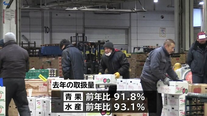盛岡市中央卸売市場の去年の取扱量は、青果、水産ともに推計で前の年の9割あまりと、天候不順や海水温上昇の影響を強く受けました。