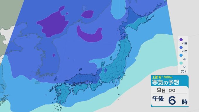 9日(木)は西日本でも上空約1500メートルは-9度以下に 近畿や四国でも“冬日”の週に 日本海側は雪で荒れる天気のおそれ 雪・雨と風シミュレーション 北陸放送 2025年1月6日(月) 14:44 国内 上空およそ1500メートルの寒気の予想ですが、8日は九州北部・四国から関東にかけて、平地で雪が降る目安になる-6度以下になる見込みです。 9日はさらに寒気は強まり、九州や四国でも-9度以下、中国地方や近畿では-12度以下になる時間帯がありそうです。 寒気の強い状態は10日(金)ごろまで続くでしょう