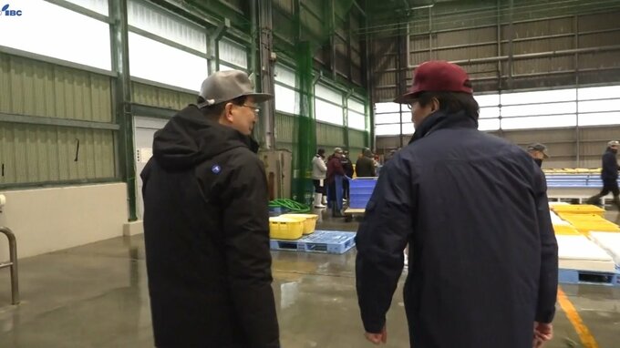 午前7時に宮古市魚市場に到着した達増知事は、関係者から水揚げされた魚や漁獲量などの説明を受けました。