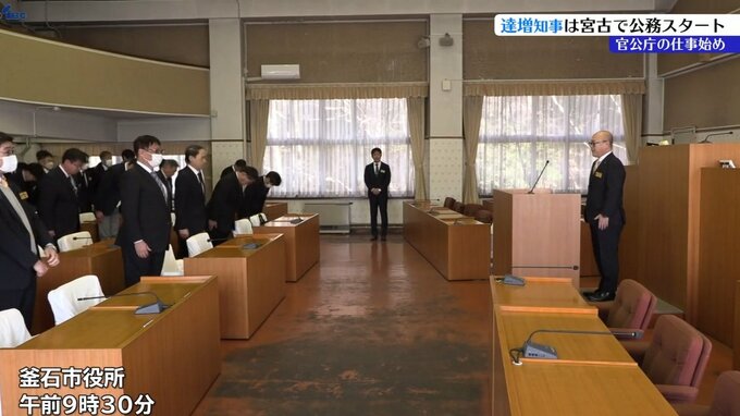 一方、釜石市では小野共市長が市の幹部職員などおよそ60人を前に訓示を行いました。