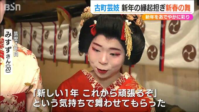 ほとんどの古町芸妓は、6日が仕事始め。新たな気持ちで新年にふさわしい3つの演目が奉納されました。