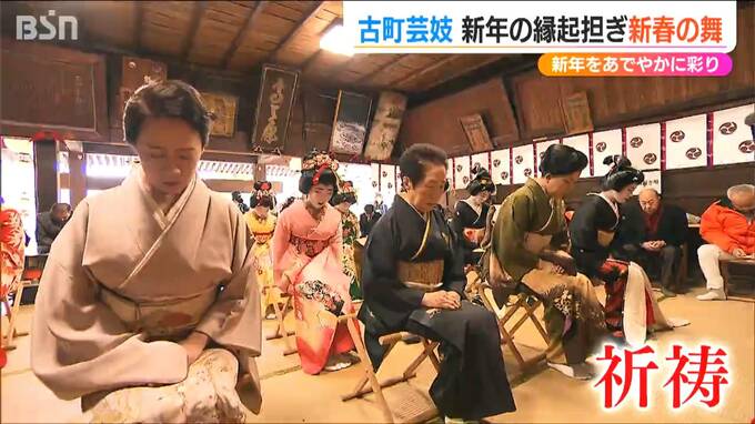 祈祷の後には古町芸妓15人が新春の舞を披露。