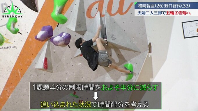 そこで練習では、本来の制限時間をおよそ半分に減らしてチャレンジ。あえて負荷をかけ、追い込まれた状況で時間配分を考えてのぼる練習を積み、プレッシャーのなかでも力を出せるようになることを目指しています。