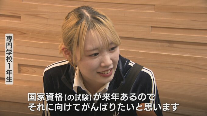 専門学校1年生「美容専門学校に行っています。国家資格(の試験)が来年あるので、それに向けてがんばりたいと思います」