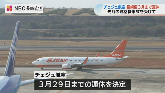 韓国・チェジュ航空の長崎空港と韓国・務安空港を結ぶチャーター便が、先月の航空機事故を受けて、3月下旬まで運休することになりました。チェジュ航空の長崎空港と韓国・務安空港を結ぶチャーター便は、先月10日…