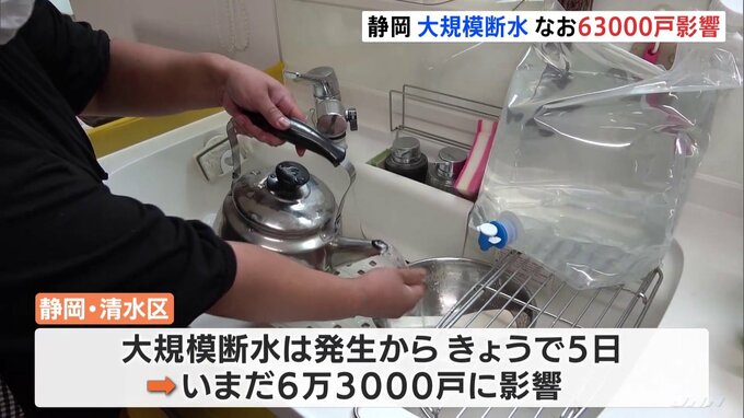 台風15号の影響で発生した静岡市清水区の大規模な断水は、発生からきょうで5日が経ちましたが、いまだ6万3000戸が影響を受けています。「(Q.まだですかね?)まだ来てないです」きょう午前、静岡市清水区の住民は…