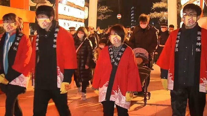 新型コロナウイルス感染拡大防止のため、2021、2022年は中止され、午前6時に表大門は開きましたが、『走り参り』は行われず、参拝者が歩いて本殿まで向かいました。2年連続の中止は、全国的に祭りでの雑踏事故が相次いだ影響で、警察から指導があった1966・67(昭和41・42)年以来で、太平洋戦争中、1945(昭和20)年8月の米軍空襲での被災で、1946~52(昭和21~27)年にも中止になっていました。