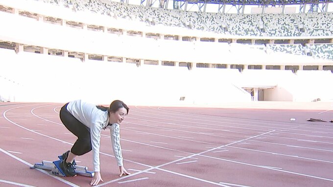 国立競技場の100mを走れる、なかなかない機会。 9秒台がどれほどすごいのか、 実際のコースで高校生以来の挑戦という小川キャスターが走って、検証する。