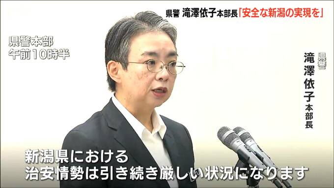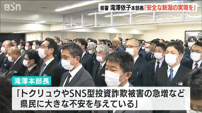 また滝澤本部長は「新潟県における治安情勢は、引き続き厳しい状況になります」と、匿名流動型犯罪グループ(トクリュウ)やSNS型投資詐欺被害の急増などが県民に大きな不安を与えていると述べました。