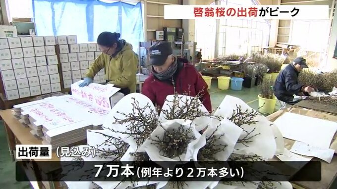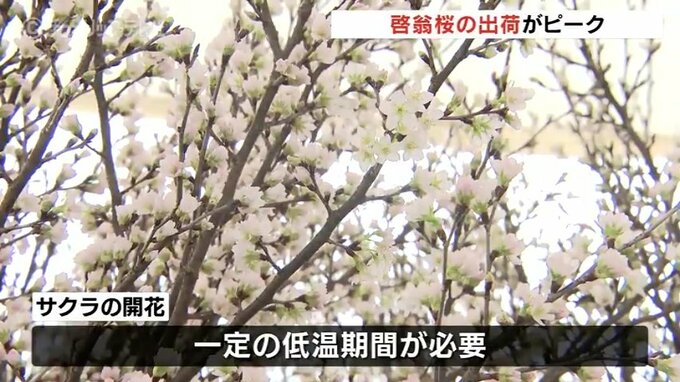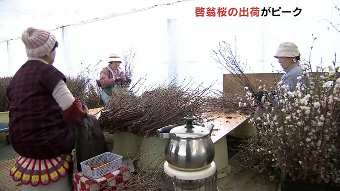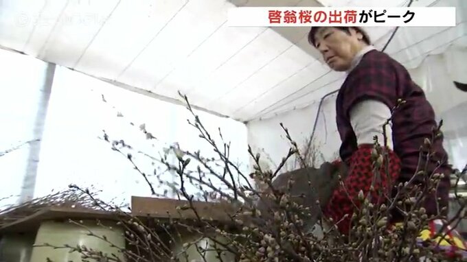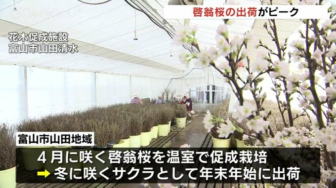 富山市の山田地域では冬に花を咲かせるサクラ『啓翁桜(けいおうざくら)』の出荷がピークを迎えています。