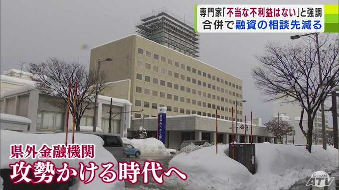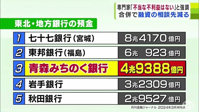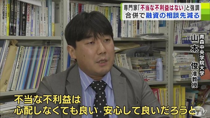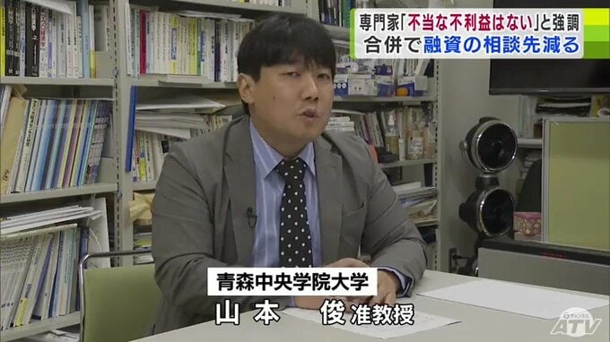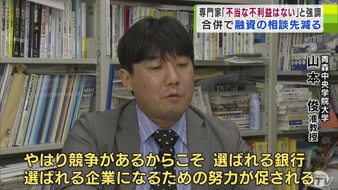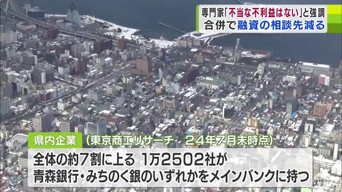 青森県内の企業全体の約7割は青森銀行とみちのく銀行のいずれかをメインバンクとしていました。両行の合併で、融資を相談する選択肢が1つ減りますが、専門家は利用者に不当な不利益はないように定められていると強調しています。