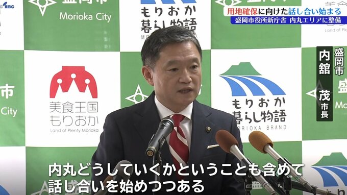 盛岡市の内舘茂市長は内丸エリアで整備が決まった市役所の新庁舎について用地確保に向けた話し合いが始まったことを明らかにしました。