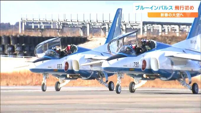 宮城県東松島市の航空自衛隊松島基地で、今年初めての飛行訓練が7日、行なわれました。アクロバット飛行チーム、「ブルーインパルス」が新春の大空に向かって飛び立ちました。ブルーインパルスの今年初めての飛行…