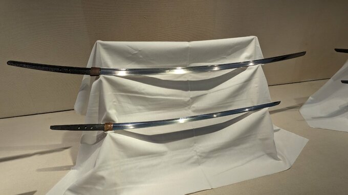 会場には奥州市の奥州文庫刀剣美術館などから借り受けた名刀22振りが展示されています。