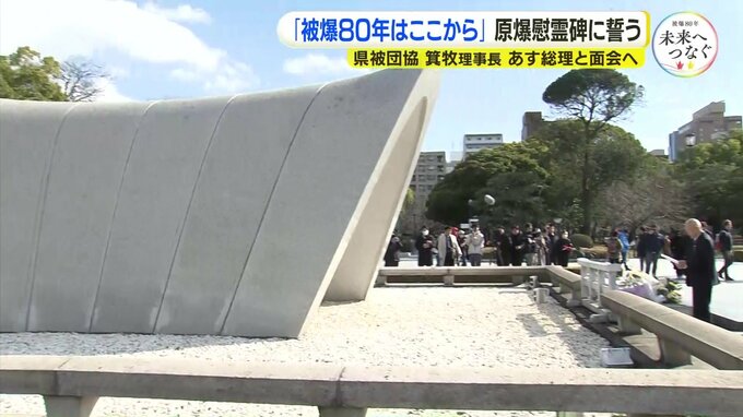 慰霊碑を訪れたのは県被団協の箕牧智之理事長です。「被爆80年のスタートはここから」と話し、慰霊碑に献花しました。