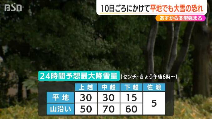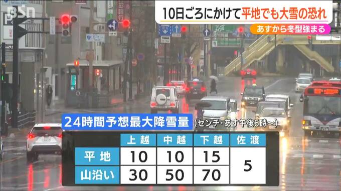 さらに8日夕方から9日夕方までに下越の山沿いで70センチ、中越の山沿いで50センチ、下越の平地で15センチの雪が降ると予想されていて、10日頃にかけて山沿いを中心に、平地でも大雪となる所がある見込みです。
