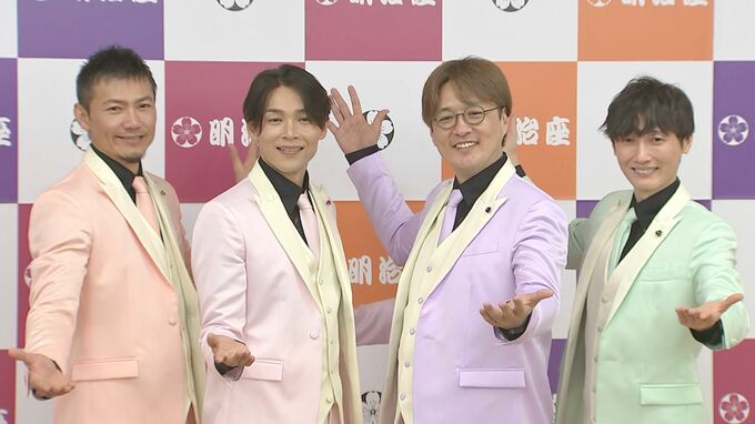 歌謡コーラスグループの純烈(酒井一圭さん・白川裕二郎さん・後上翔太さん・岩永洋昭さん)が、「明治座新春純烈公演」の初日公演を行いました。今回は、明治座で3回目となる純烈の座長公演。芝居とコンサートの2部構成で、集まったファンを楽しませました。